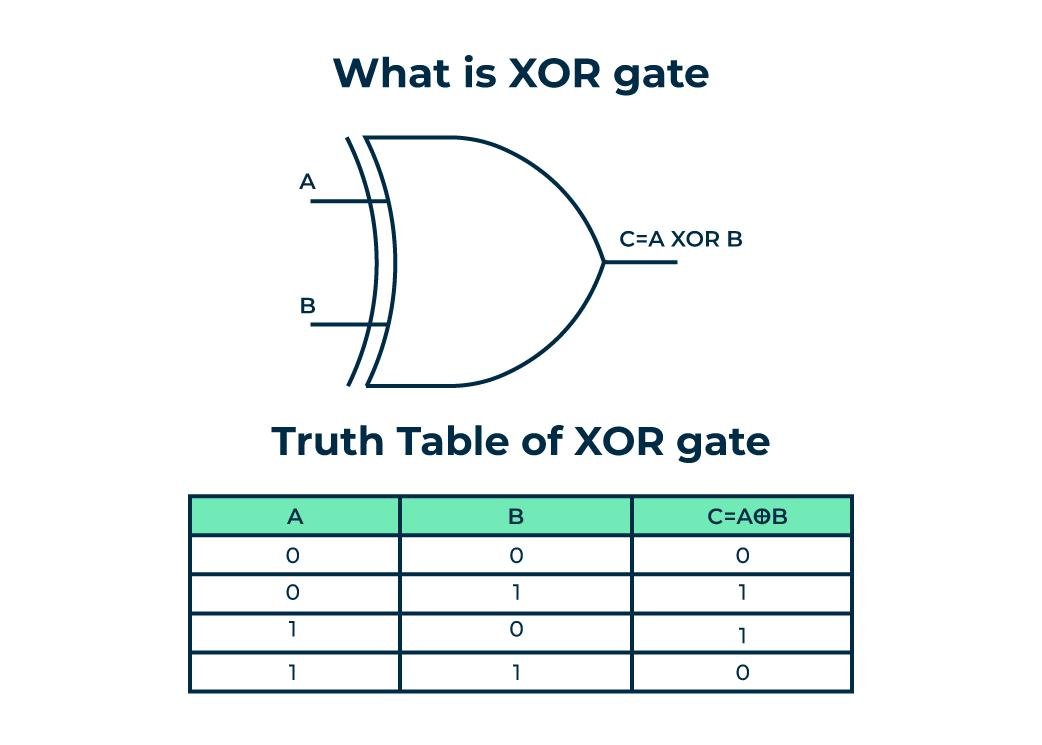 И нам нужно, чтобы в разряде при сложении двух единиц оставался 0. И XOR дает этот ноль, когда на входах две единицы.