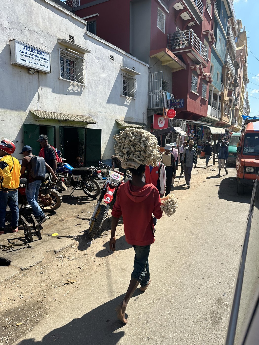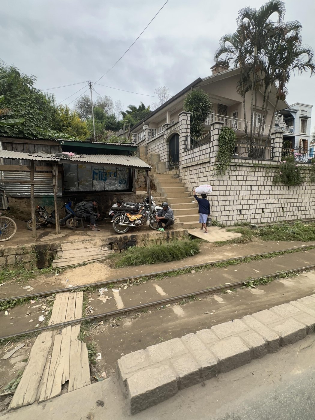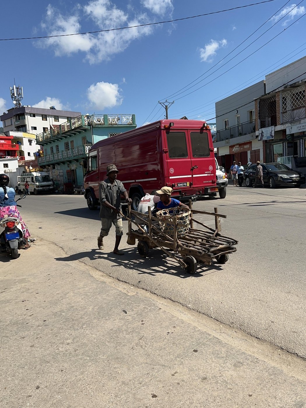 Вокруг Антананариву (Тана, как город называют местные), столицы страны, есть небольшое количество новых асфальтовых дорог. Но чуть дальше от города все дороги разбиты очень сильно. Кроме того, путями перемещения между населенными пунктами, зачастую, тут является единственная дорога. Из-за этого все дороги очень загружены разнообразным транспортом - от местных жителей на велосипедах и байках, до огромных эвакуаторов, транспортирующих силовую технику.