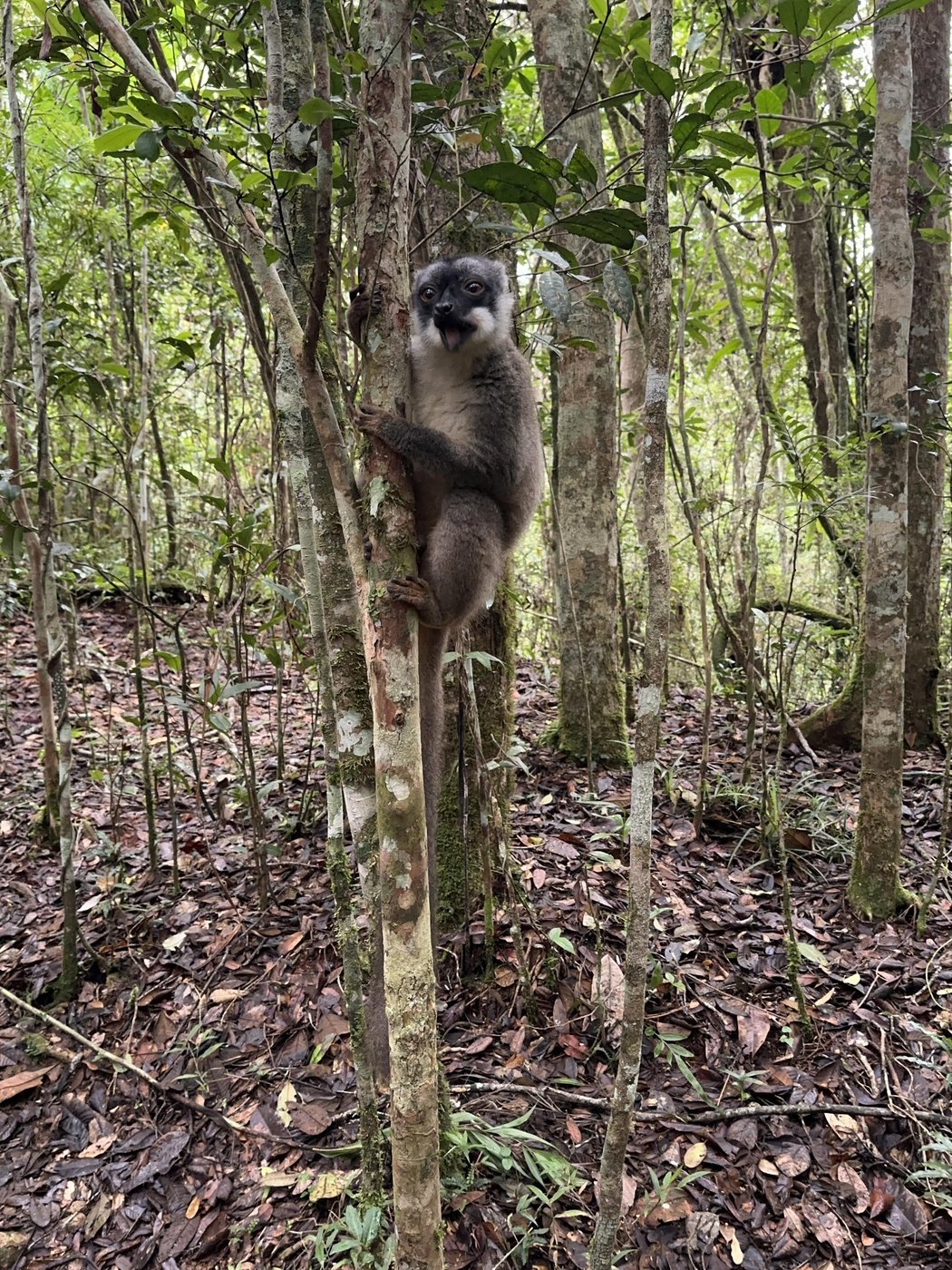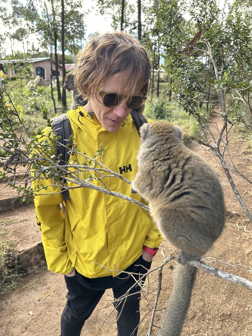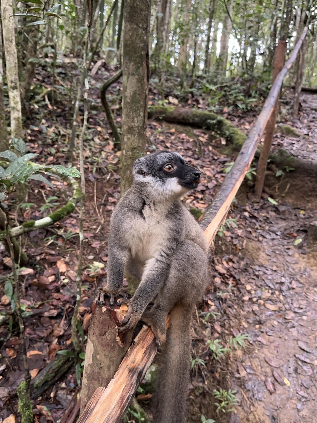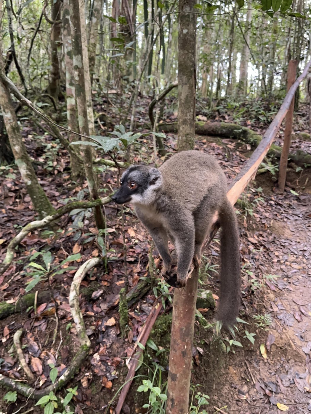 Вместе с ними приходит один лемур из семейства коричневых лемуров и с ним связанна грустная история.