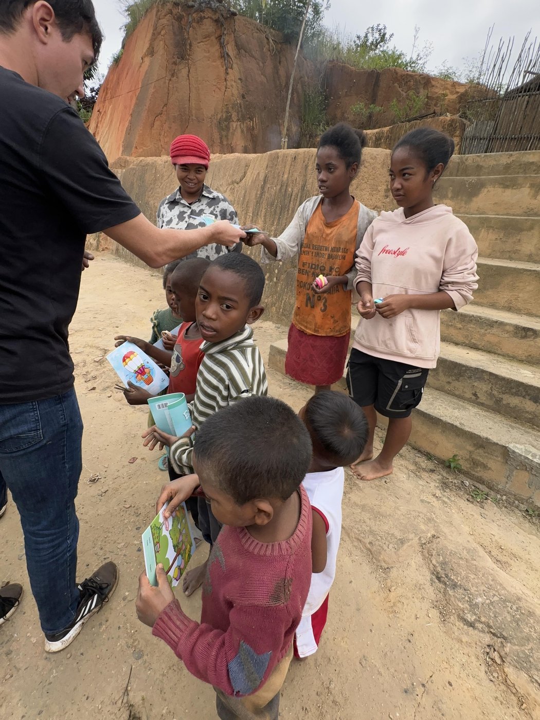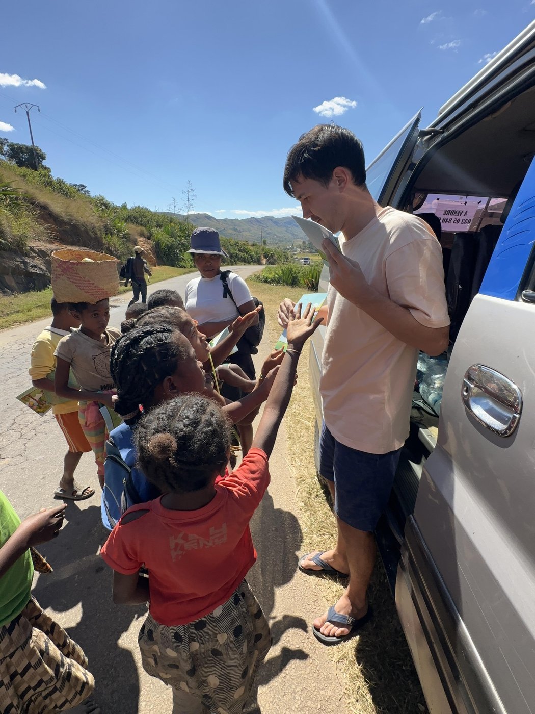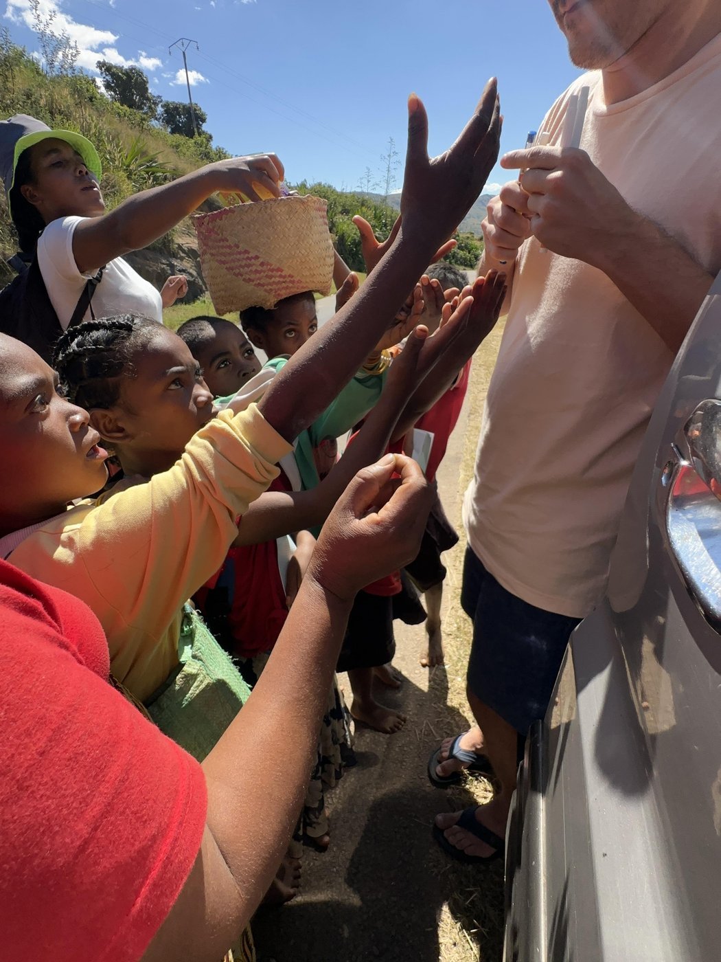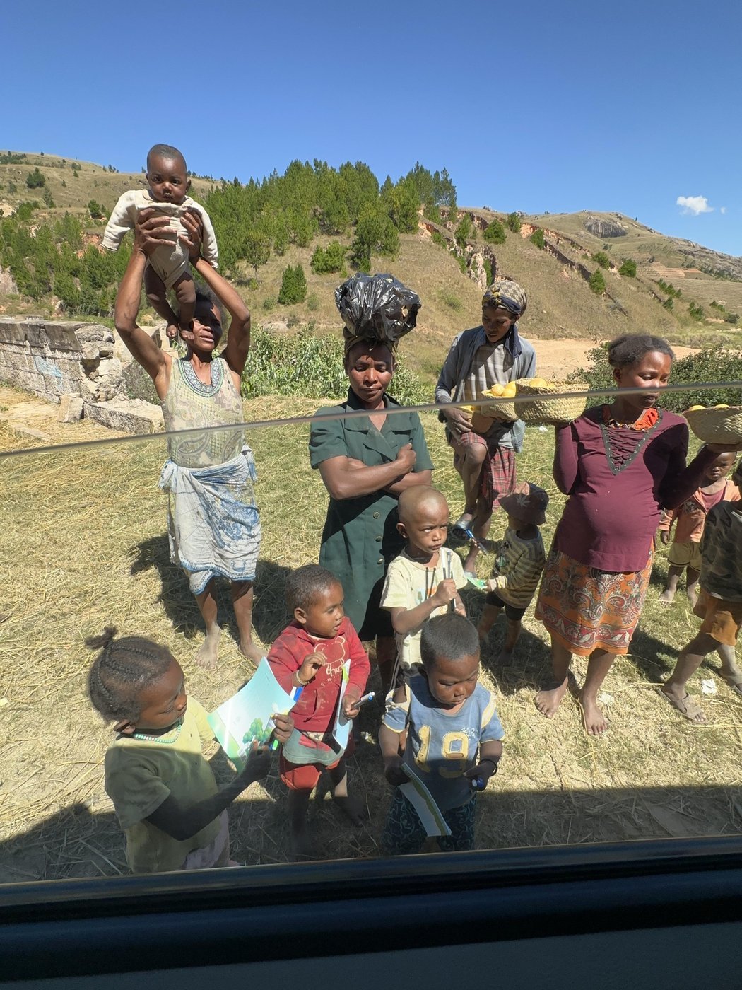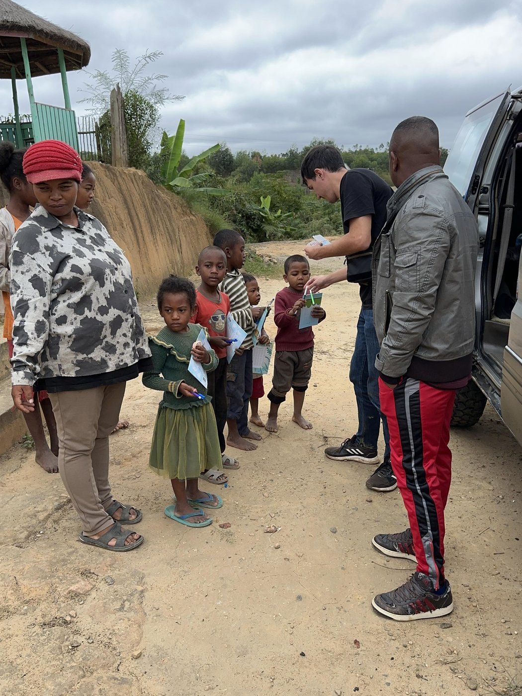 Долгая дорога до следующего отеля прошла с заездом в небольшой город и в еще одну деревню и раздачей гуманитарной помощи. Мы отметили, что чем дальше от столицы, тем беднее живут люди.