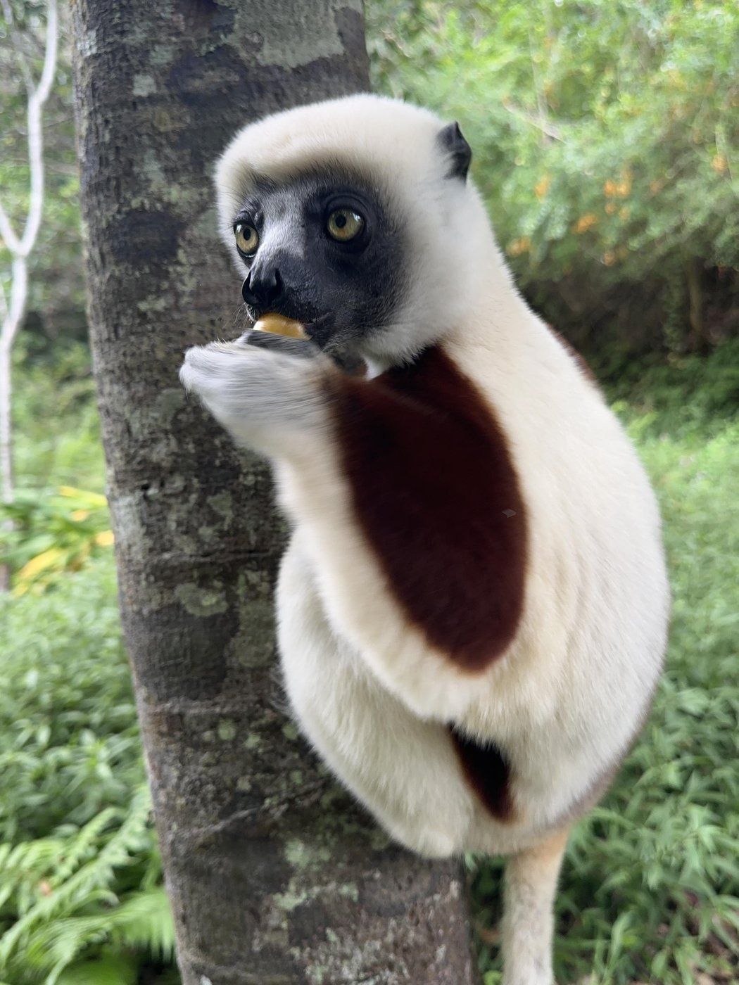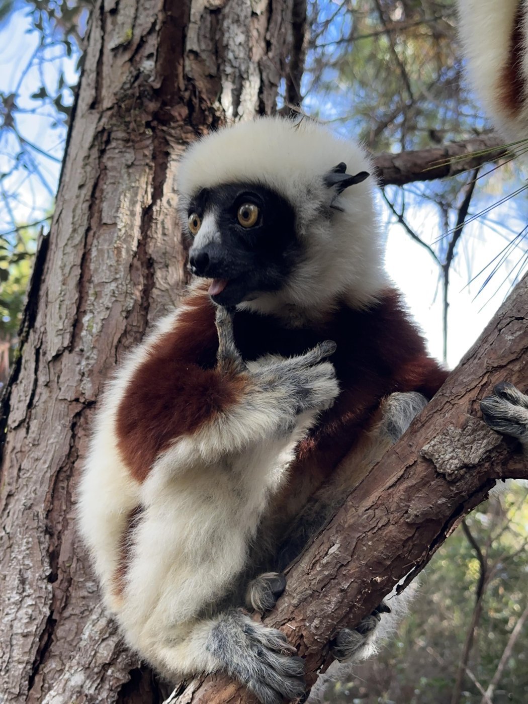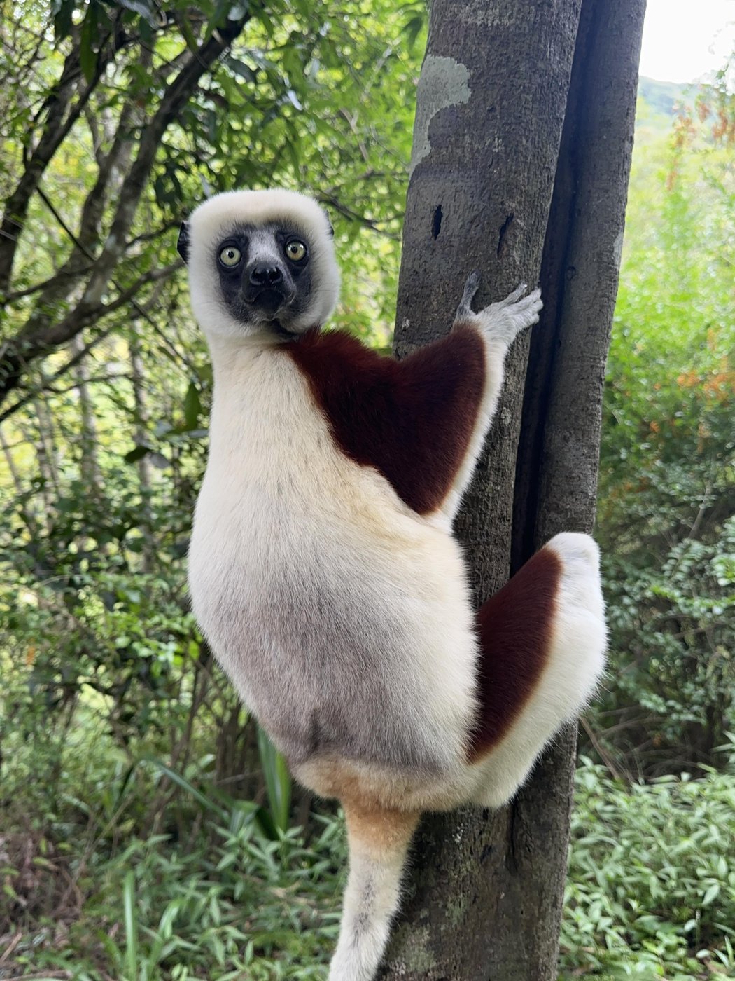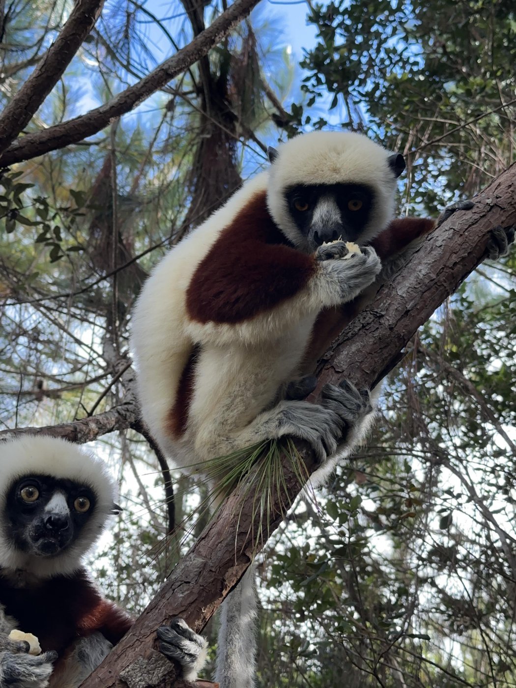 ℹ️ Тут нам рассказали еще один факт, что сифак называют “танцующими лемурами”, потому, что по земле они передвигаются прыжками на двух ногах, расставив руки в сторону. Со стороны это смотрится как танец.