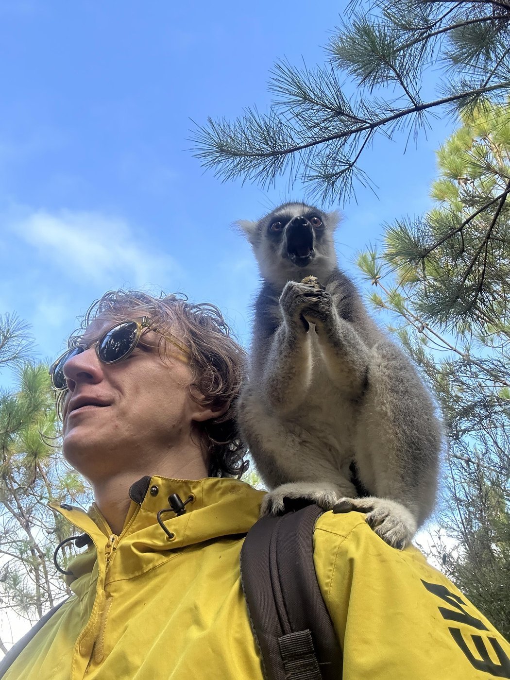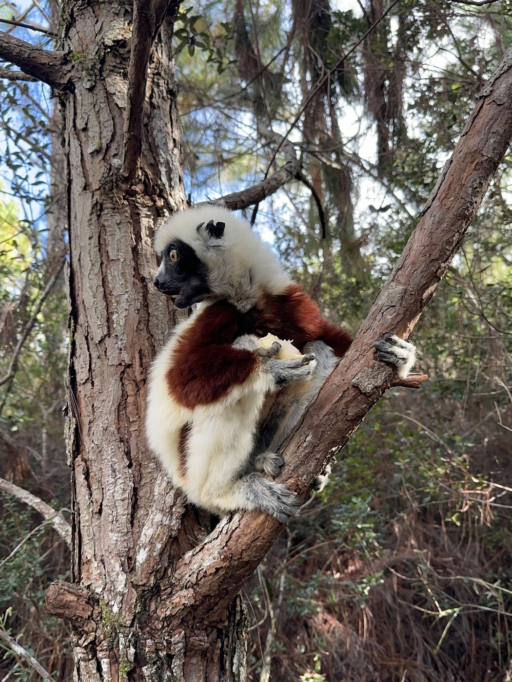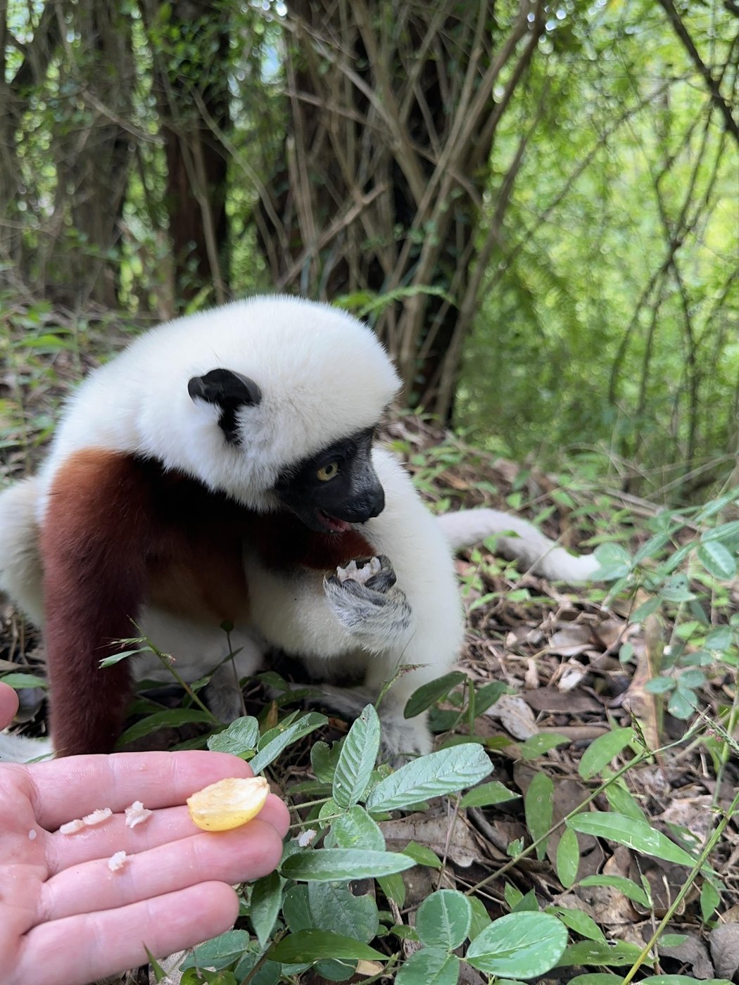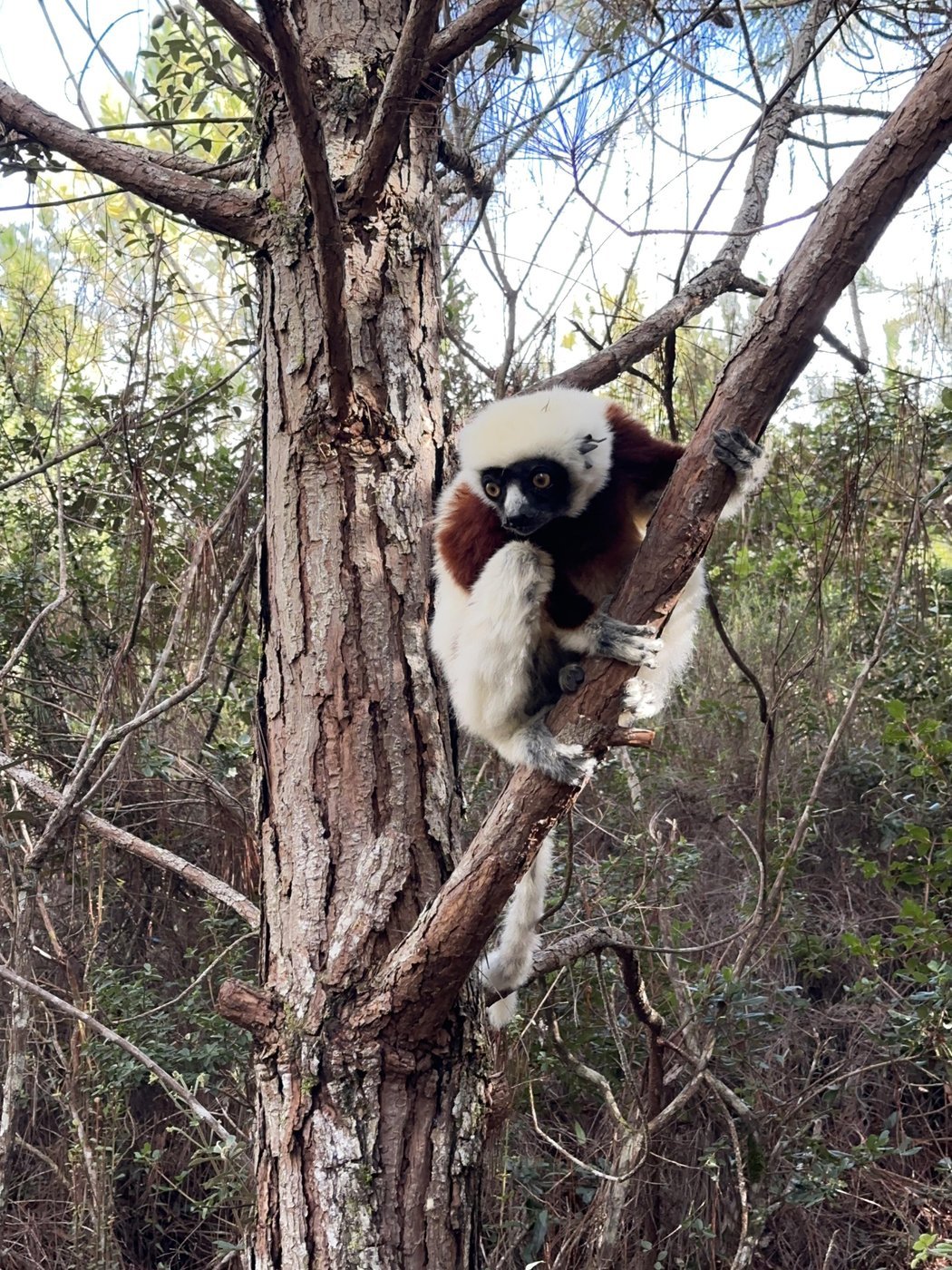 ℹ️ Тут нам рассказали еще один факт, что сифак называют “танцующими лемурами”, потому, что по земле они передвигаются прыжками на двух ногах, расставив руки в сторону. Со стороны это смотрится как танец.