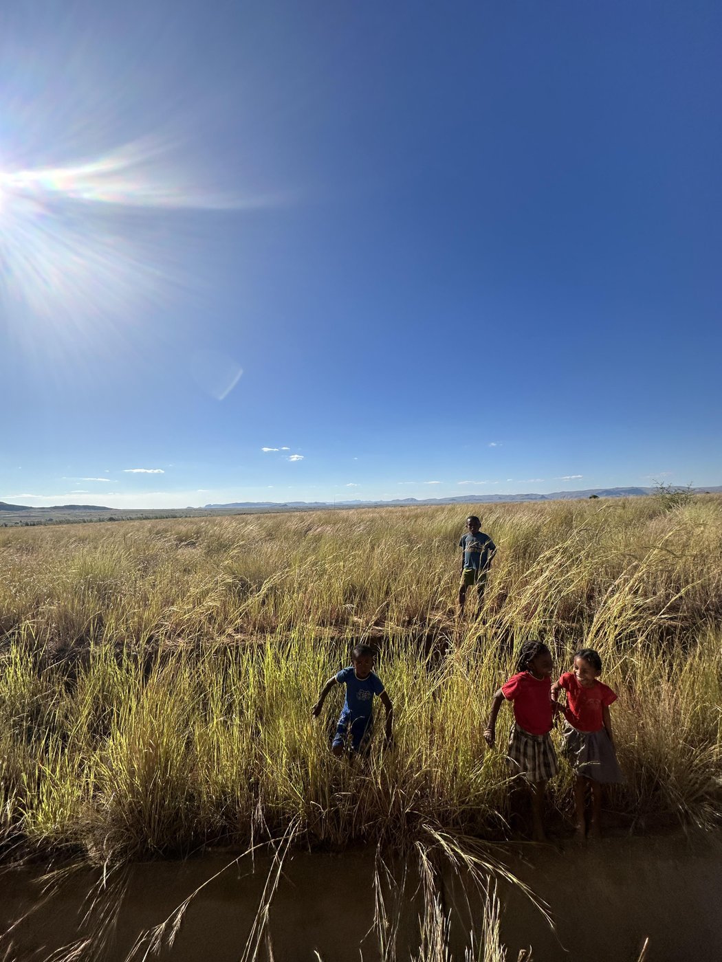 Дети сидят в пыли и песке, там же и играют. А когда чуть подрастают - начинают помогать родителям выращивать рис, кукурузу, пасти зебу и так далее.
