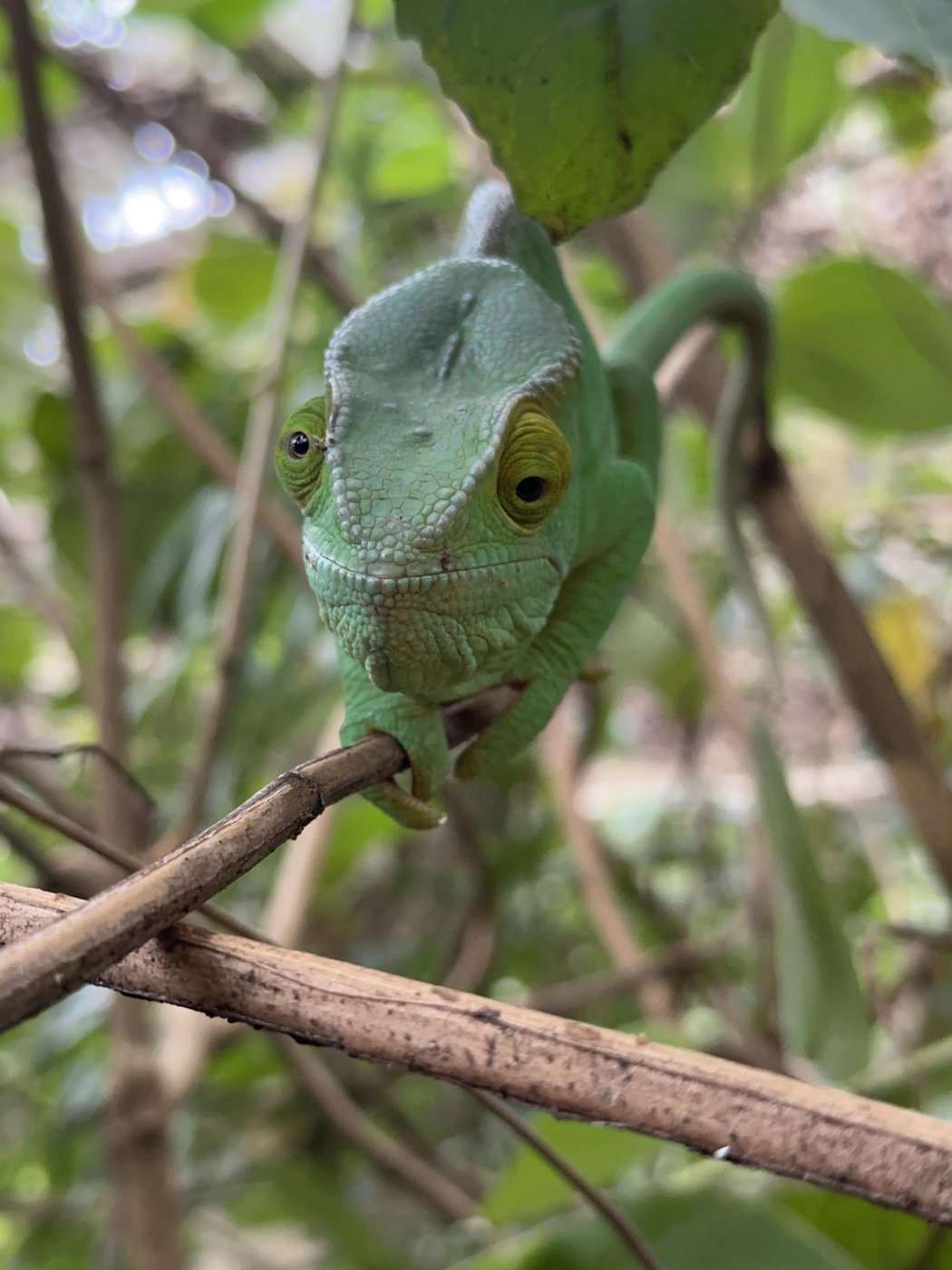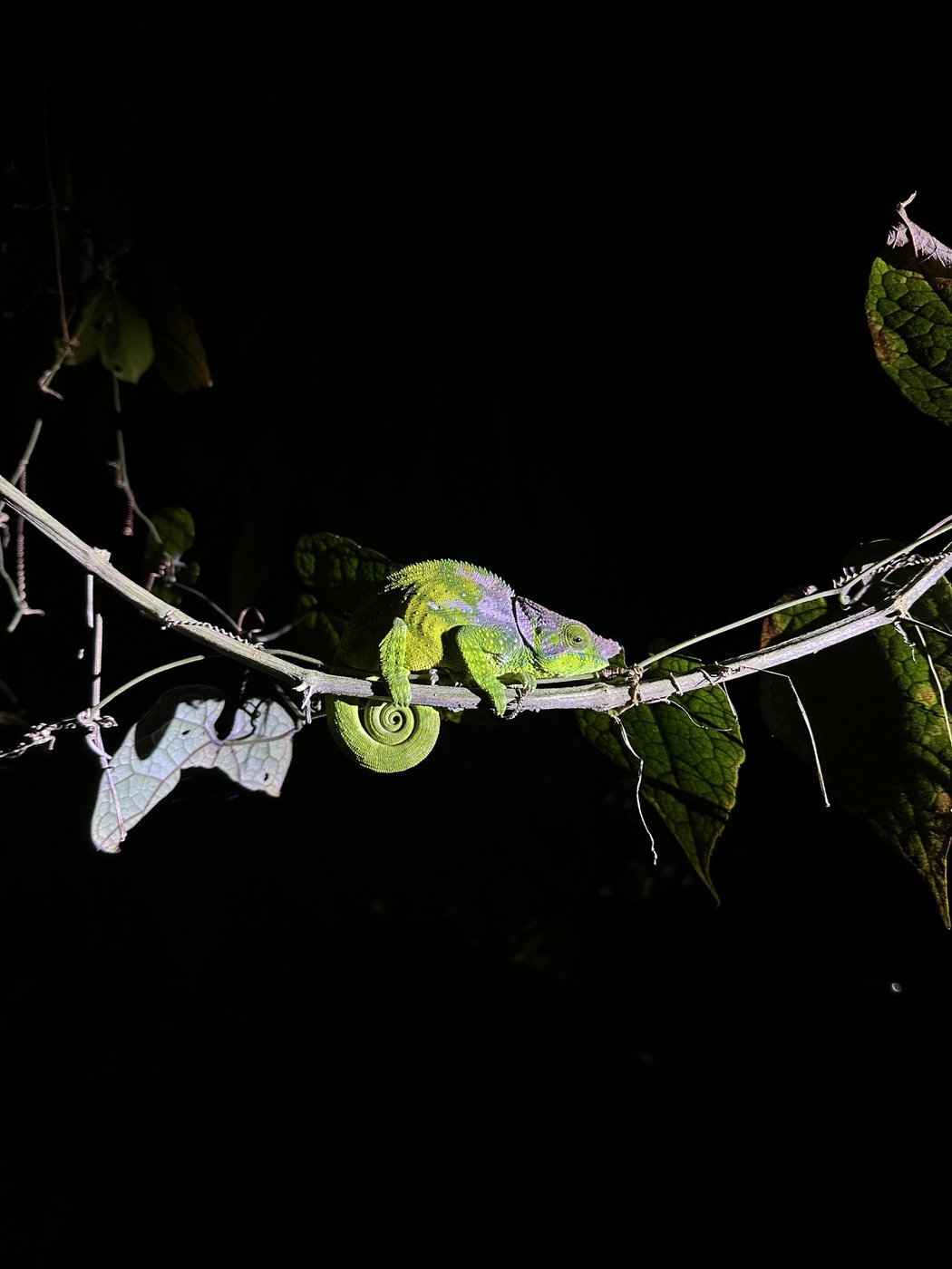 Когда гуляли - гид нас приводил на места с хамелеонами безошибочно. Мы спросили - как он их находит.