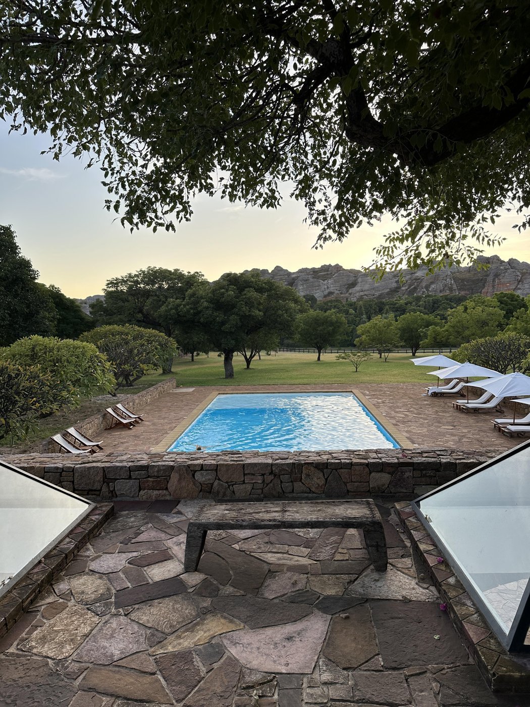 Отель был одним из лучших за всю поездку. Мы решили проснуться пораньше и встретить рассвет, но из-за расположения это не очень удалось даже когда мы забрались на скалы на территории отеля.
