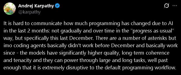 Это, конечно, произошло очень быстро. Наблюдал как коллеги, знакомые, друзья перешли на 90-100% кодинг с агентами буквально за 1-2 месяца.