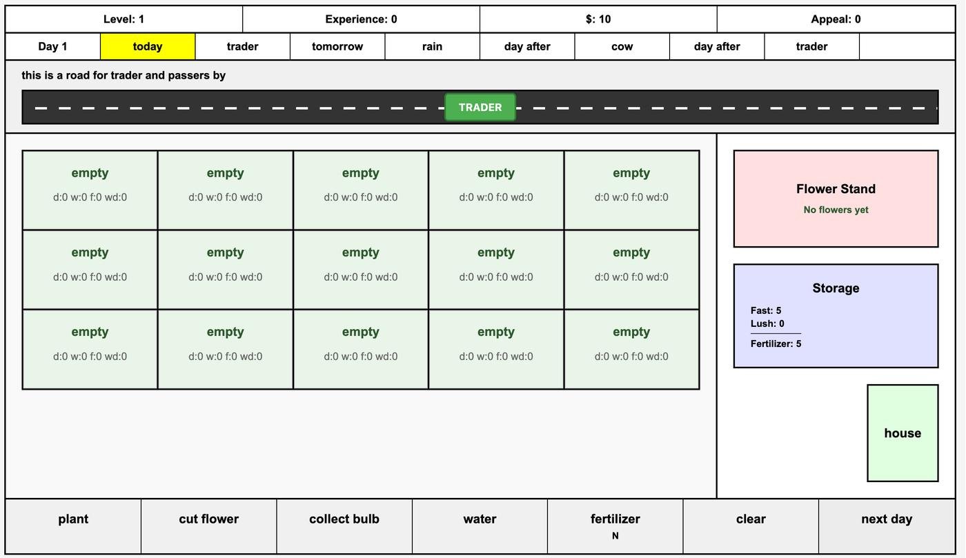 У игрока одно поле и одна культура - растим тюльпаны. У тюльпанов много типов и цветов, чтобы не было совсем уж скучно. Так-то игра больше подходит для кэжуальщиков на мобилках, но соревноваться с монстрами на мобильном рынке я не смогу, поэтому стим. Там хоть попонятнее что к чему.