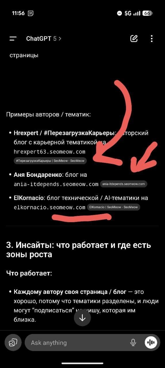 Результат - каналы начали всплывать в ИИ ответах - пока не контролируемо. Что все же не может нас не радовать.