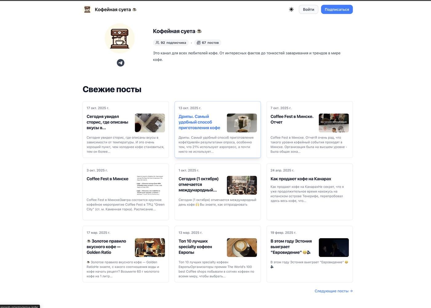 Прикольно! А что, все посты с момента открытия канала индексируются? Как поисковики к старым постам относятся?