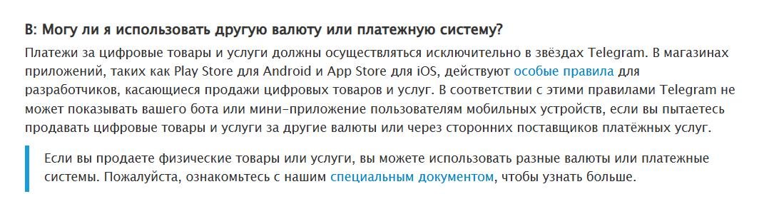 Есть и плюс. Телеграм сам предложит вашему клиенту купить звезды, притом учтет регион пользователя, когда будет указывать доступные способы оплаты. То есть вам решительно пофиг, в какой стране находятся покупатели, вопрос приема оплат вы скидываете на телеграм.