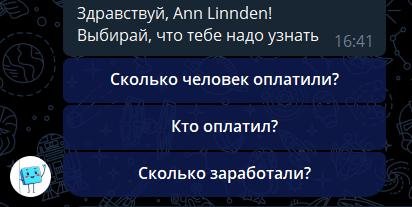 Примерно вот так. В этом боте другой код и больше возможностей, чем в открытой версии, но сама суть не меняется.
