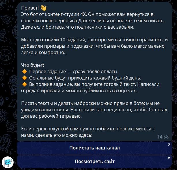 Как будет выглядеть контент в боте