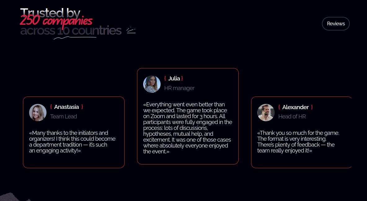 С клиентом в итоге отыграли, им понравился формат - но разгадали кейс только 25%, и так как людям больше нравится выигрывать, нам накидали немножко какашек что мол не все так очевидно и это для задротов скорее. Дальше мы еще несколько недель тестировали кейс, чтобы поднять уровень "разгадывания" хотя бы до 80%, вот тогда он стал интересен для более массовой аудитории - так что тестирование и обкатка сценариев это не менее важный шаг, чем их создание!