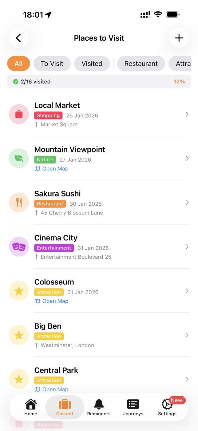 Список мест. Полуавтоматический, с возможностью дополнять руками. Потому что ИИ может предложить тебе посетить музей средневековых пыточных инструментов, а ты просто хотел кофейню с вайфаем.