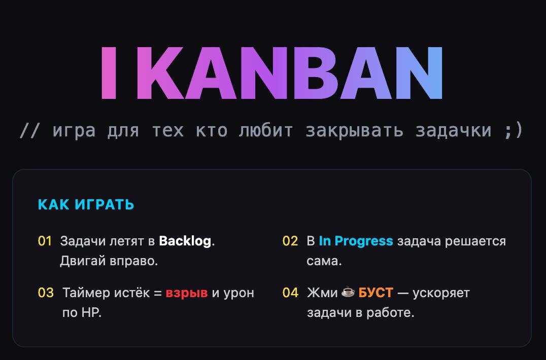 💡Идея родилась на работе. Сидели с коллегами, обсуждали, что закрывать задачи — это реально кайф. Мозг выдаёт дофамин, когда задача уходит в DONE. Все кивают, у всех горят глаза. И я подумал: а что если довести это до абсурда — превратить канбан-доску в буквальную игру, где от скорости закрытия зависит выживание?
