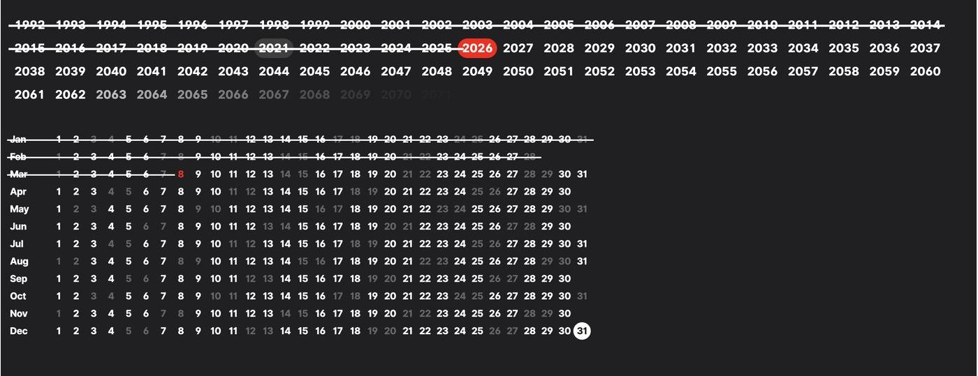 Клёвая штука для части людей, кто реально ощущает Memento mori как положительное давление. Мне кажется, чаще такие календари работают или в стиле «капец тревога выросла» или «перестал вести через пару недель/месяцев, так как нет вот этого положительного давления».
