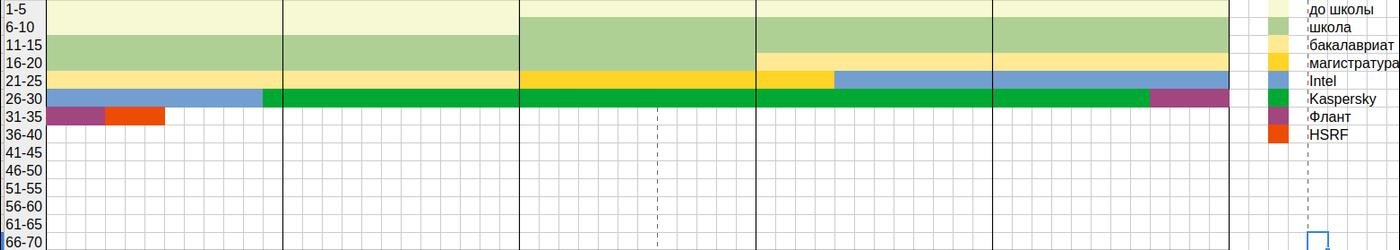 Делал такую штуку тупо в таблицах. Хотел накодить веб гуй, чтобы можно было отмечать не одно состояние (сейчас я отмечаю, где учился/работал), а несколько наложенных, но забил.