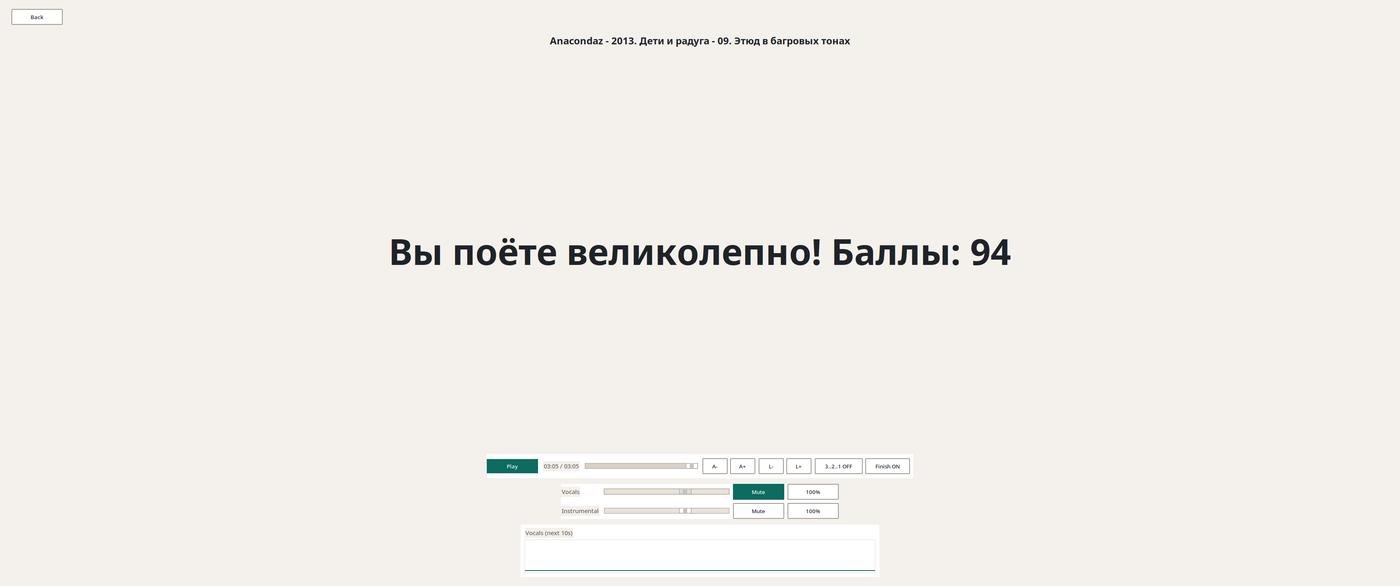Можно регулировать громкость вокальной и инструментальной дорожки, свободно перематывать трек, получать удовольствие от караоке-версий своих любимых песен 🎶🕺💃