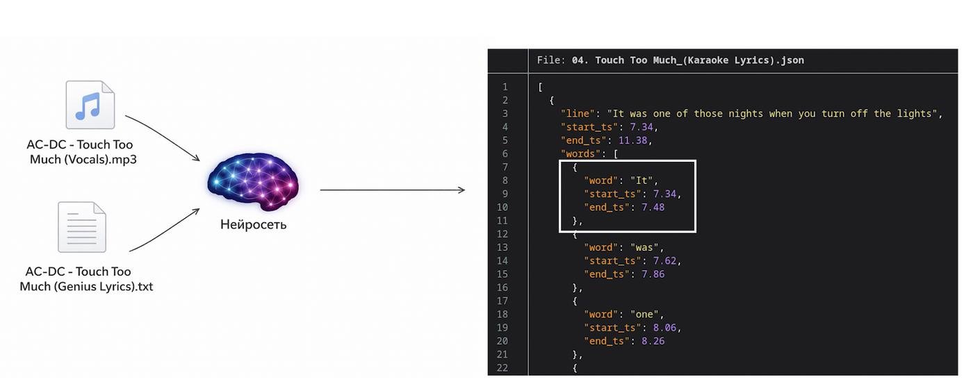 Я пробовал STT модельки, чтобы сопоставить тайминги: брать куски по k секунд, транскрибировать, дальше сделать какой-то алгоритм, который используя текст и эти кусочки получает тайминги для каждой строчки, но у меня не получилось, и я забил.