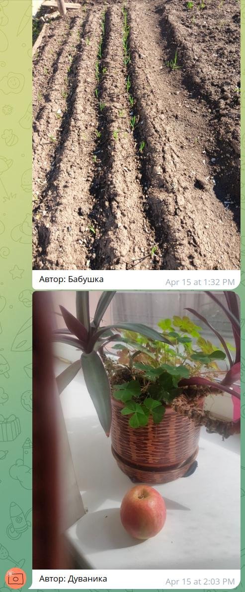 У нас две бабушки: одна «дуваника», потому что ул татар дәүәни, вторая «бабушка», потому что она русская бабушка. Дуваника в какой-то момент перестала отправлять фотки... Пока я не добавил русскую бабушку! Бабушка живет в деревне, у нее свои поля картошки, поэтому на природные темы она засылала только так, а первой пришлось поспевать.