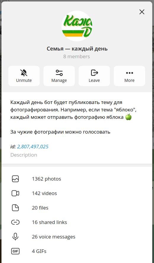 Идея понравилась и я решился на эксперимент: создал чат «Семья каждый день» с той самой аватаркой, пригласил туда всю семью и начал постить новую тему каждое утро. И они начали скидывать туда свои фотки! И до сих пор шлют!