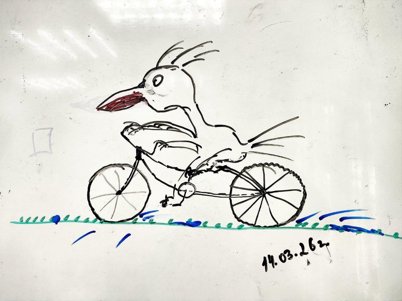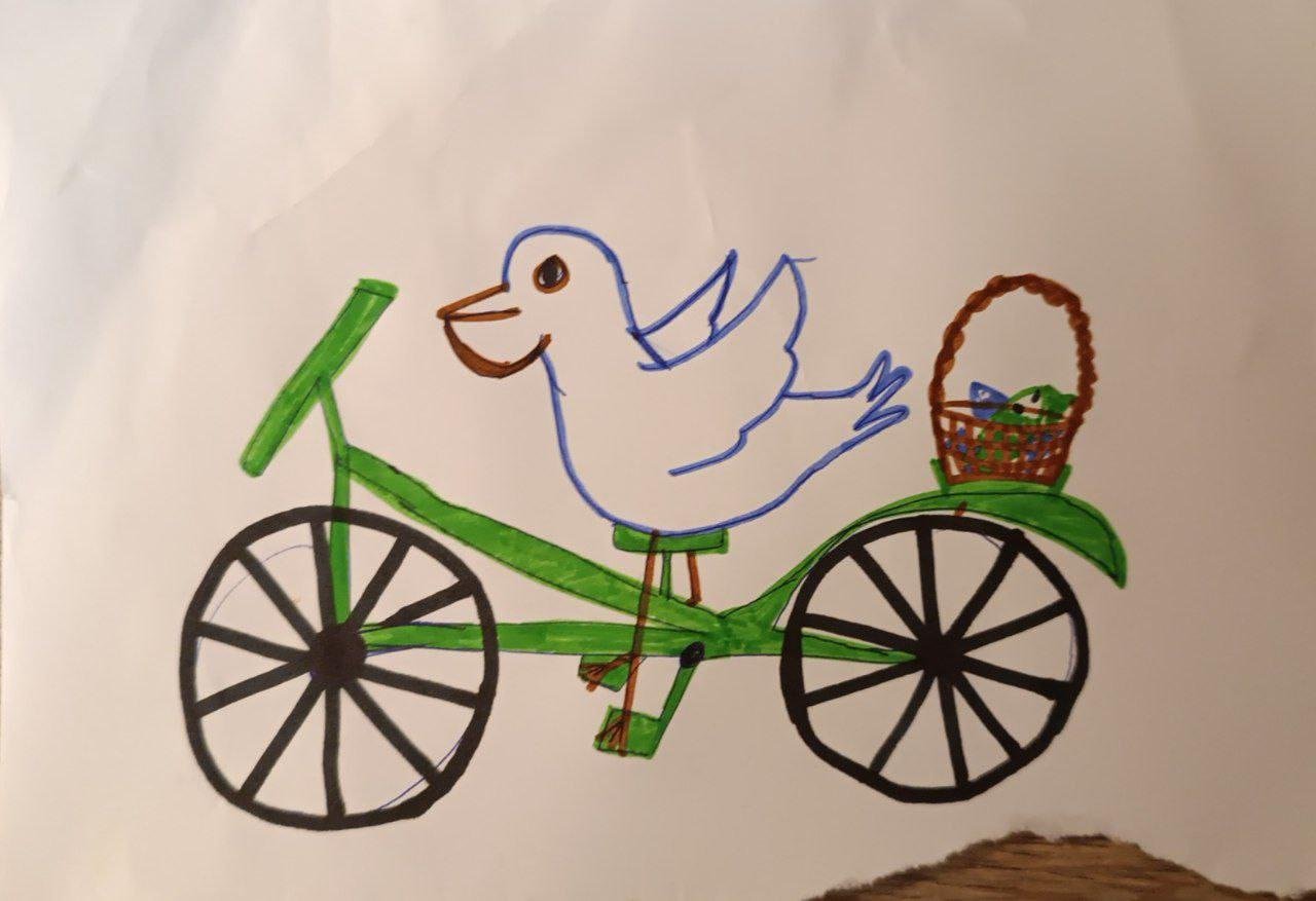 Закончу нашим семейным творчеством на тему «Нарисуйте пеликана на велосипеде 🚲»: