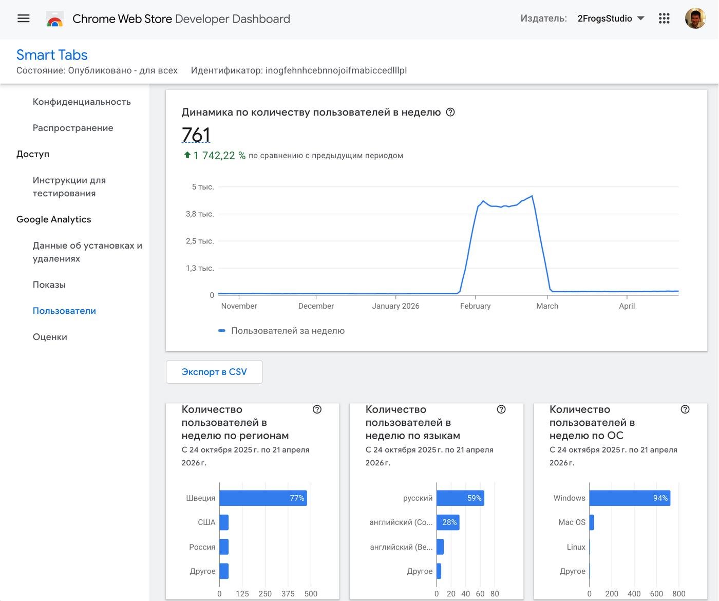Чуть позже я решил выложить расширение в Chrome Web Store. К тому же я продолжал улучшать UX и добавил еще несколько крутых фичей, о которых расскажу чуть позже. В итоге мой промоутинг без стратегии выглядел так:
