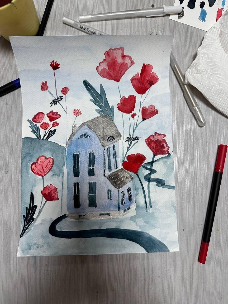 В этом году стала рисовать акварелью. В прошлом ходила в художку лет пять