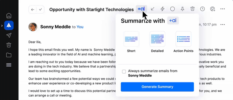 Для личного использования много лет подряд в моем топе - Spark. Есть быстрые ответы в моем собственном стиле, суммаризация цепочки писем, переводы, исправления текста и пр. Кроме AI, еще есть удобные хоткеи и мульти-ящики. Что может быть приятней, чем отвечать одной кнопкой "Не интересно"?