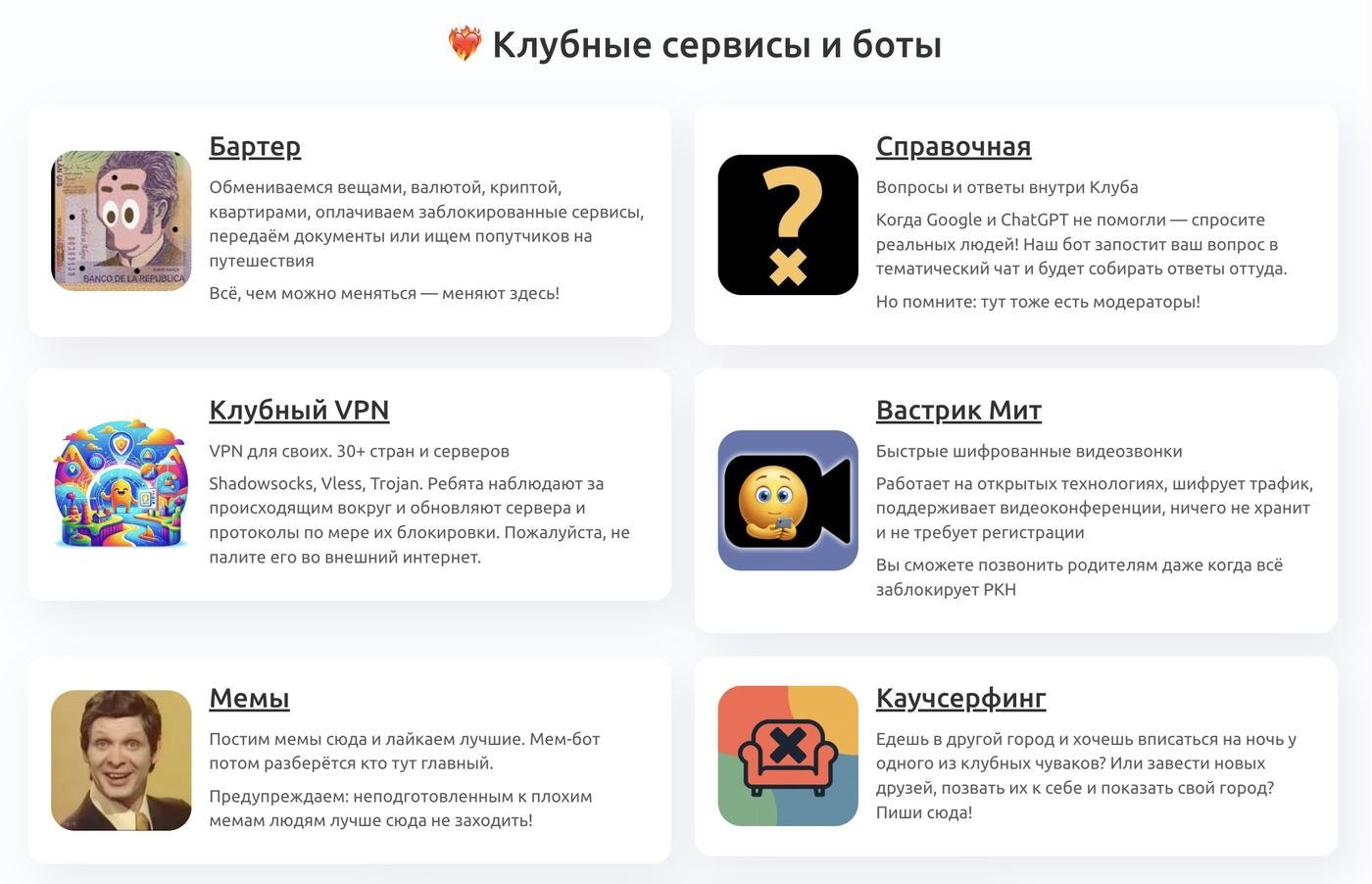 Расскажите в комментах какие еще сервисы вы видели на просторах телеграма и других коммьюнити, которые было бы интересно в каком-то виде заиметь или адаптировать под Клуб?
