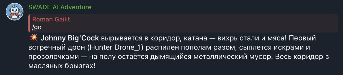 У нас странная ситуация: мы с другом играем онлайн через ТГ и припрягли ТГ бота (которого я параллельно подпивасно разрабатываю) для этих целей на роль LLM-ГМ.