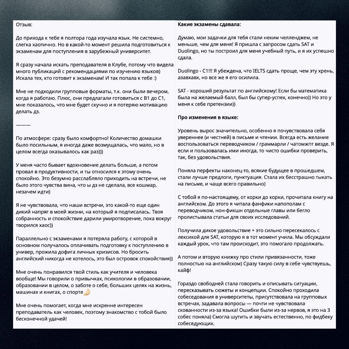 Полноценное чтение художественной и нон-фикшн литературы, обсуждение, анализ — всё это напрямую повлияло на академическое чтение и лексику для SAT.