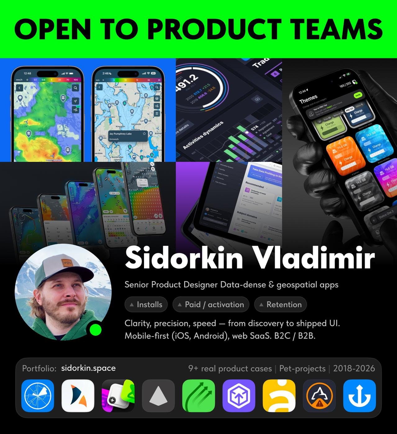 Мне важно не только качество интерфейсов, но и влияние дизайна на продукт и бизнес-результат. Сейчас ищу команду, где смогу применять свой опыт в более разнообразных задачах — как в продуктовой среде, так и в аутсорс-разработке. Особенно интересны направления internal tools и healthtech.