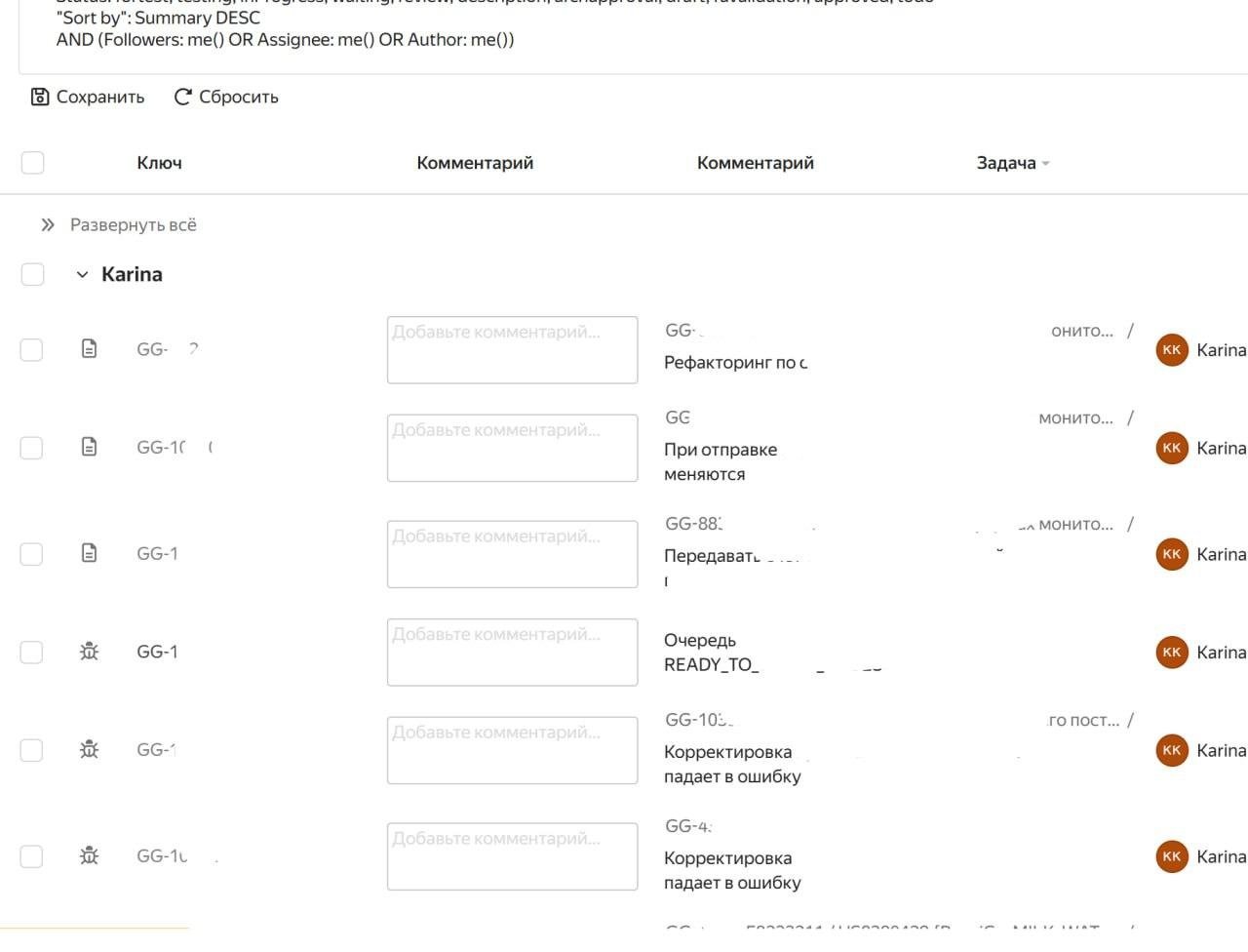 комментарии помогают не запутаться в задачах и не открывать одно и тоже по 100 раз, чтобы перечитать комменты и вспомнить чего и от кого я жду.