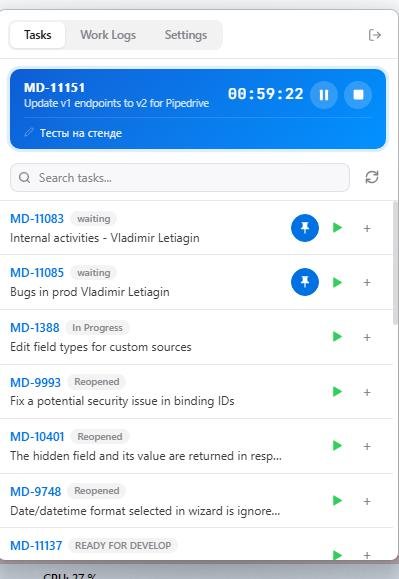 В чем идея и какую проблему решает: На работе заставили трекать время потраченное на таски. Сделал свою трекалку.