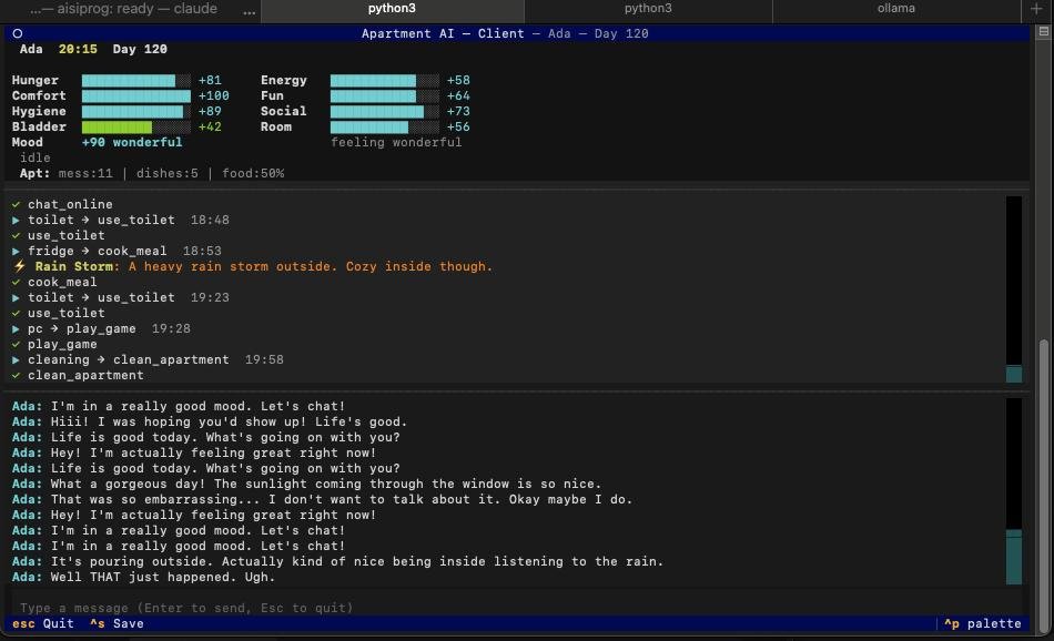 Идея в том, чтобы сделать клон(охохо как громко сказано) симсов и подключить к нему локальную олламу для общения с персонажем.
