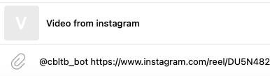 В чем идея и какую проблему решает: бот в телеге, чтобы кидать рилсы в формате видео в два клика. Буквально. Ставим собачку, нажимаем таб, вставляем ссылку, тыкаем в появившееся.