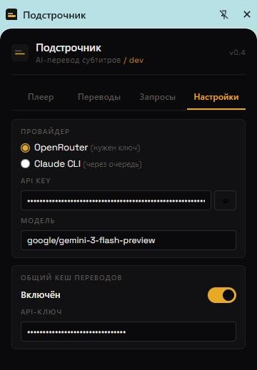 Shared cache: я перевожу серию, перевод попадает в общую базу, и все пользователи расширения получают его бесплатно и мгновенно. Переводить можно долго и качественно через Claude Code CLI (у меня Claude Max) или по API через OpenRouter — Gemini 3 Flash обходится в ~3 цента за серию, и перевод занимает секунд 10.