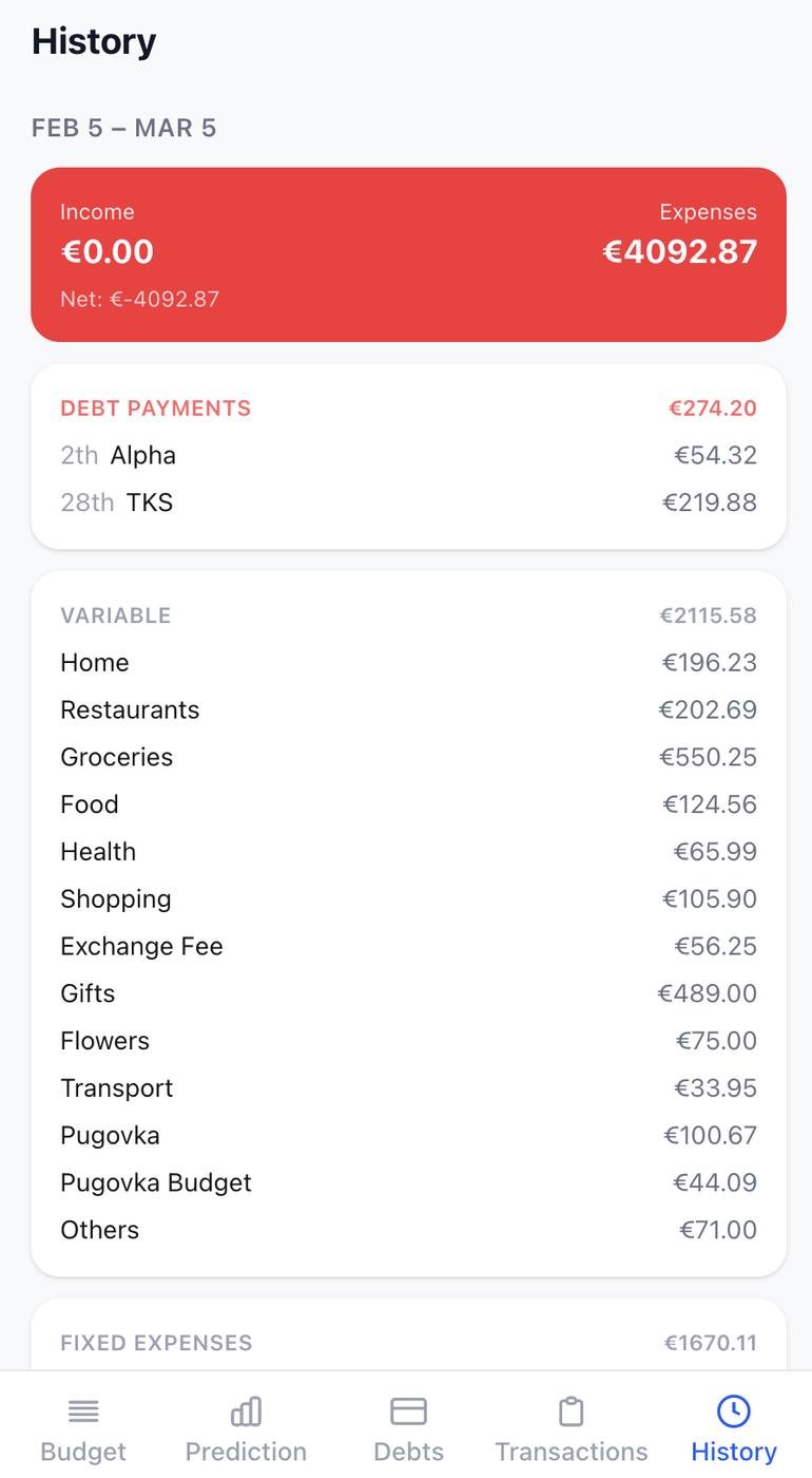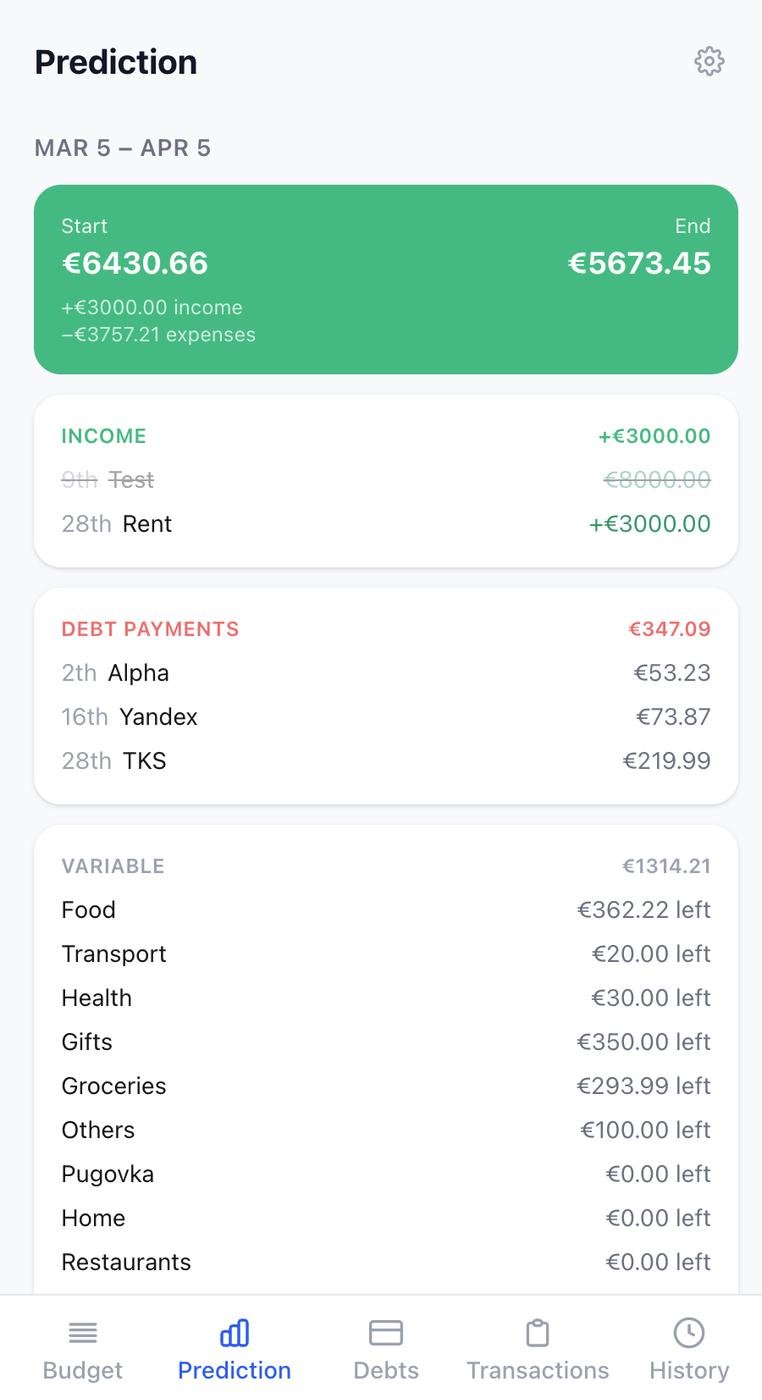 Хотелось подсчитать один раз общую сумму и понять сколько я могу тратить в месяц/неделю/день.
