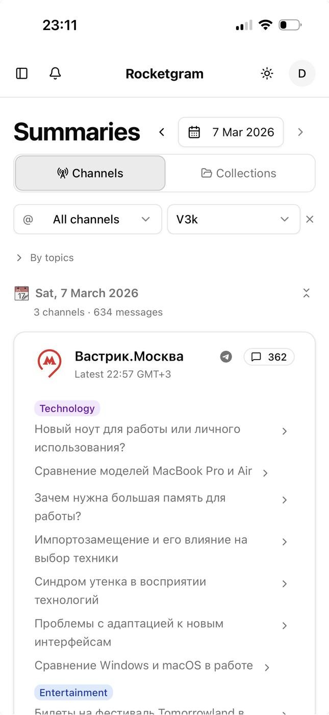 В чем идея и какую проблему решает: Для моих проектов мне приходится отслеживать огромное количество источников информации. Проблема в том, что во многих источниках соотношение сигнал/шум отстойное. Приходится листать много заведомо неинтересных мне материалов. И рекламы.