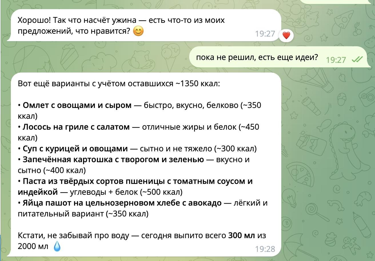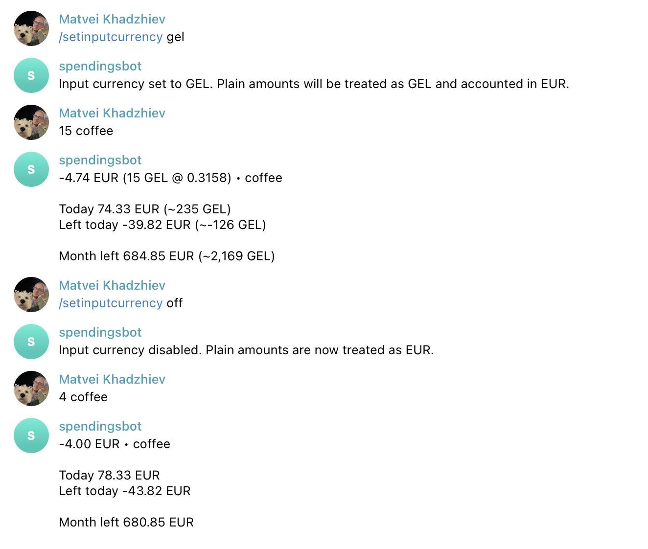 Я хотел очень простой флоу: я задаю сумму на месяц, после каждой траты отправляю боту текст человеческого вида вроде «4.5 coffee», он это запоминает и говорит, а сколько ещё я могу сегодня/в месяц потратить.
