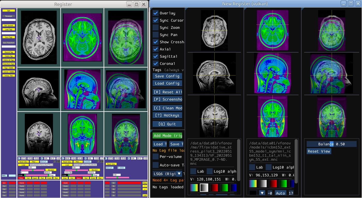 Слева старая - написанная ещё для SGI ещё в девяностых , и потом портированная на Linux со всякими костылями и без поддержки HiDPI экранов. Справа - современная переработка на C++ с
