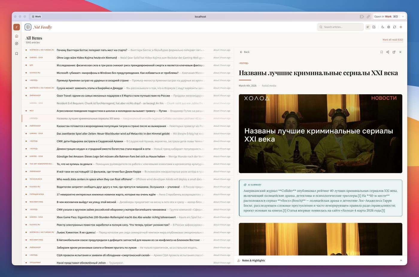 Я решил сделать для себя систему, которая автоматически отфильтровывает то, что мне заранее не интересно. Я добавляю в систему источники (RSS, TG-каналы, Твиттеры) и прописываю, что мне в нем нужно, а что мне в нем не нужно.