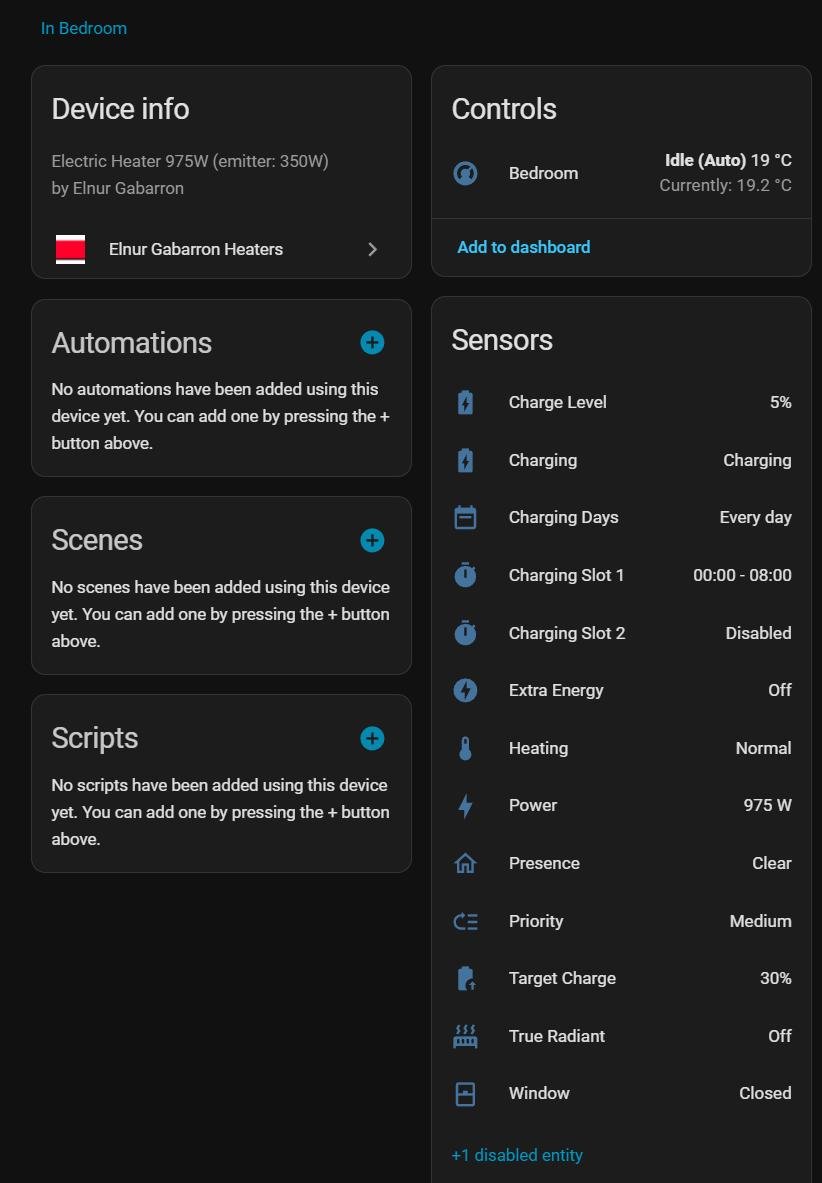Интеграция в Home Assistant для отопителей Elnur Gabarron