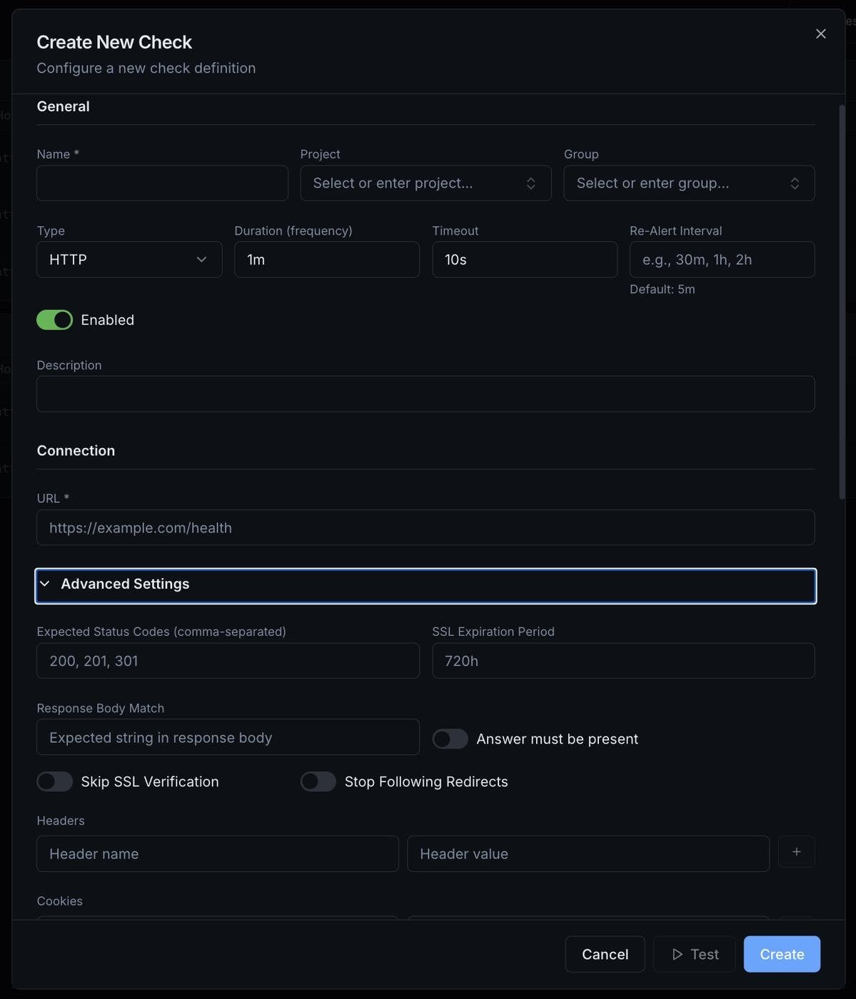 Uptime Robot и аналоги — это, в основном, HTTP-пинги и несколько типов простых проверок. Хочешь проверять Redis, gRPC-эндпоинт или SSL-сертификат — плати за дорогой энтерпрайз или собирай из кусков.